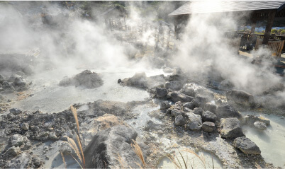 いたるところから、高温の温泉と噴気が噴出し、硫黄の香りが漂うなか、湯けむりがもうもうと立ち込めるさまが、地獄の景色を彷彿とさせることから名付けられました。